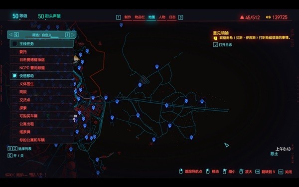 《赛博朋克2077》中的赛博飞行常客奖杯需要玩家找到所有的快速移动资料终端 ,本图展示完成以后的朋克位置。寻找攻略图的版全时候发现当前版本比以前增加了不少传送点 ,希望对大家有用 。地图点位